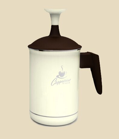 Spôsob používania: naplňte napeňovač do 1/3 objemu studeným mliekom a zohrejte približne na 60 °C. Nasaďte veko s miešadlom s dvojitou mriežkou. Veko pevne držte a úchyt asi 10 krát zdvihnite a zosuňte. Pena je hotová. Nechajte stáť niekoľko sekúnd a potom pomaly nalejte na kávu v šálke.