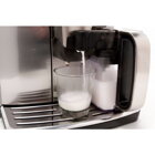 Vďaka automatickému napeňovaniu mlieka, Velasca Prestige dokáže vyrobiť niekoľko mliečnych špecialít stlačením jedného tlačidla. Jedinečný systém dvakrát pred naplnením šálky, dávkuje mlieko, aby sa zaistila ideálna teplota a štruktúra mliečnej peny. Pre jednoduché a hygienické čistenie je stroj vybavený špeciálnym tlačidlom na opláchnutie mliečneho okruhu po každom použití. Pre väčšiu jednoduchosť je karafa umývateľná v umývačke riadu a ak ju nepoužívate, môže byť uložená v chladničke. Ak chcete dávkovať horúcu vodu, môže byť karafa na mlieko nahradená špeciálnym výtokom vody, ktorý zapadá do prednej časti stroja.