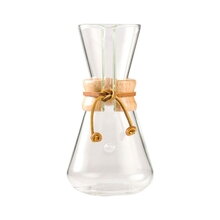 Kávovar Chemex vynašiel v roku 1941 Dr. Peter Schlumbohm. Dizajn vychádzal zo skúseností, ktoré získal tento talentovaný chemik. Táto jednodielna nádoba so svojím tvarom presýpacích hodín je vyrobená z vysoko kvalitného žiaruvzdorného skla. Úlohu držiaka plní drevený golier s koženou kravatou. Sklo, z ktorého je vyrobený Chemex, neabsorbuje pachy, a preto nemá žiadny vplyv na príchuť zalievanej kávy. Vyrobené v Spojených štátoch.