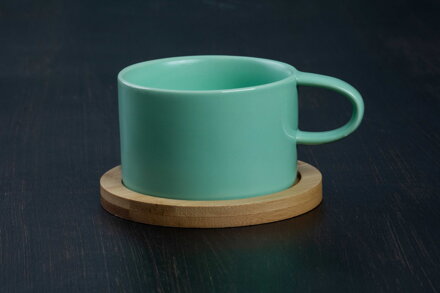 Šálka keramická s drevenou podšálkou - mätová