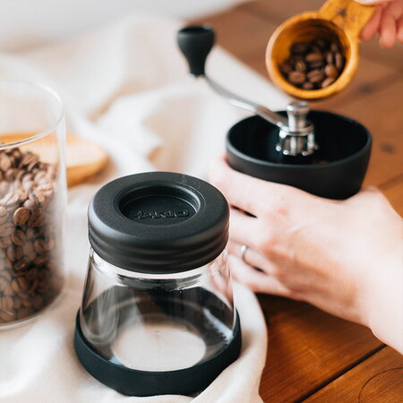 Spodná nádoba je vyrobená zo skla a má protišmykovú gumičku pre lepšiu stabilitu a ochranu pri položení na tvrdý povrch. Kryt pevne tesní, aby sa zachovala čerstvo namletá káva. Ručný mlynček Hario Skerton N je možné v priebehu niekoľkých sekúnd rozobrať a vyčistiť opláchnutím teplou vodou.